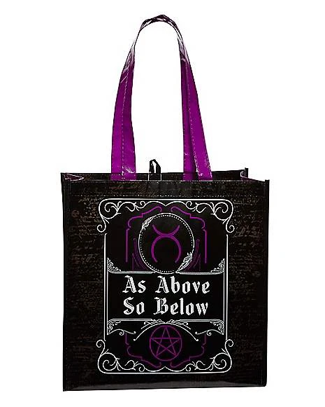 Collect your candy this Halloween all while showing your love for the mystic arts when you use this As Above So Below Tote Bag. When you use this tote bag you’ll have lots of candy in your future and you’ll have a great accessory for any mystic arts or dark magic costume.
