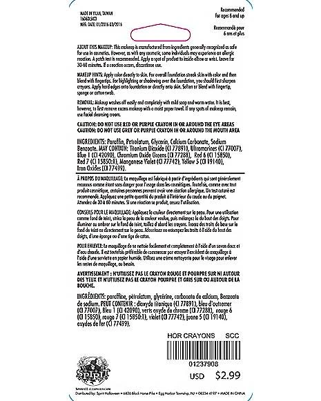 Create horrifying looks for the whole family with the Horror Makeup Crayons. These 5 crayons allow you to create an array of horror looks, including Gothic looks, bruising and blood stains.