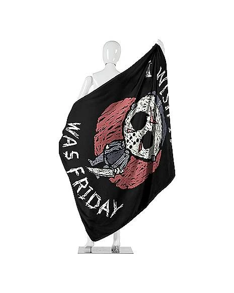 Avoid the cold and bundle up while you wait for the weekend with this officially licensed I Wish It Was Friday Fleece Blanket. This cozy fleece features a cute Jason Voorhees on the front and is perfect for horror fans!