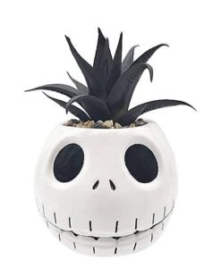 This Jack Skellington planter doubles as a unique piece of décor and a conversation starter! Give your guests a stylish hint that you love The Nightmare Before Christmas with this 5 inch Jack Skellngton planter. Featuring a ceramic Jack Skellington plant holder and a faux plant, this planter requires zero maintenance.