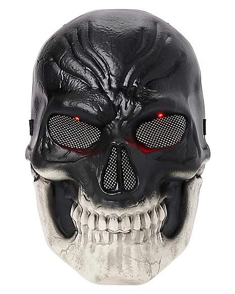 Terrorize everyone you encounter this Halloween when you wear this Light-Up Dark Skeleton Mask! With its glowing red eyes and giant teeth, this mask is sure to make them scream as you look your spookiest.